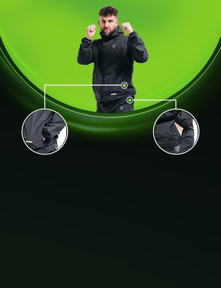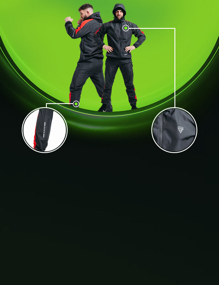 Immerse yourself in environmentally-conscious fitness with the RDX H1 Sauna Suit. Compliant with OEKO-TEX 100 and REACH standards, this eco-champion incorporates a distinctive silver inner lining within the Instant Sweat, Fabric, pivotal to Heat Suit, Tech. Experience unrestricted movement, heightened visibility through reflectors, and excel in diverse workouts. Command efficient perspiration in eco-luxury with the advanced H1 Sauna Suit from the RDX Sauna Range 2.0.