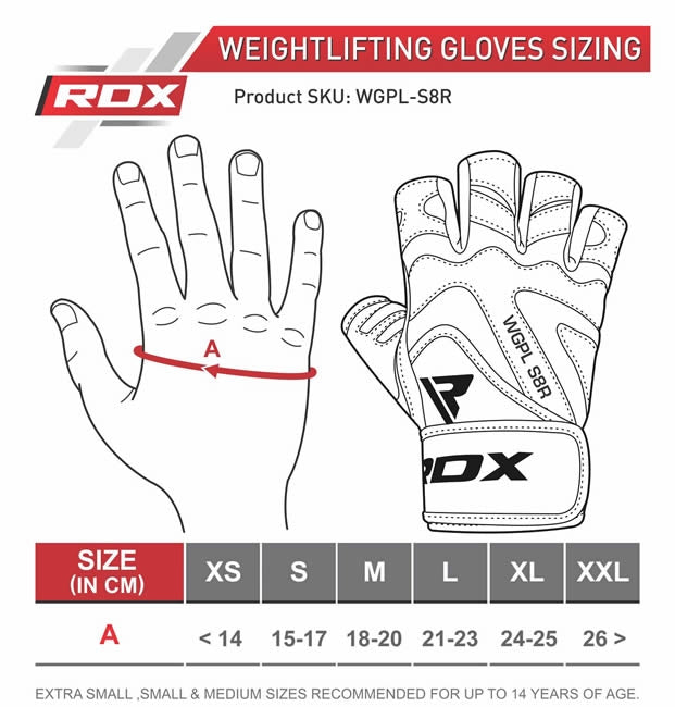 The RDX Leather Weight Lifting Gym Gloves are high-grade gloves for both amateurs and pros alike. Weve designed them to be super lightweight and flexible, so that nothing gets in the way of your lifting technique. Cushioning in the thumb, combined with compression technology reduces stress on your hands, while the secure leather strap gives your wrists the support they need. Style is important too, which is why these gloves are finished in an exclusive metallic red, complimented with black webbing and the stitched RDX logo. Athletes from Archery, Gymnastics, and track cycling, fencing and climbing can get benefit from these gloves. (EXTRA SMALL,SMALL AND MEDIUM SIZES RECOMMENDED FOR UP TO 14 YEARS OF AGE)