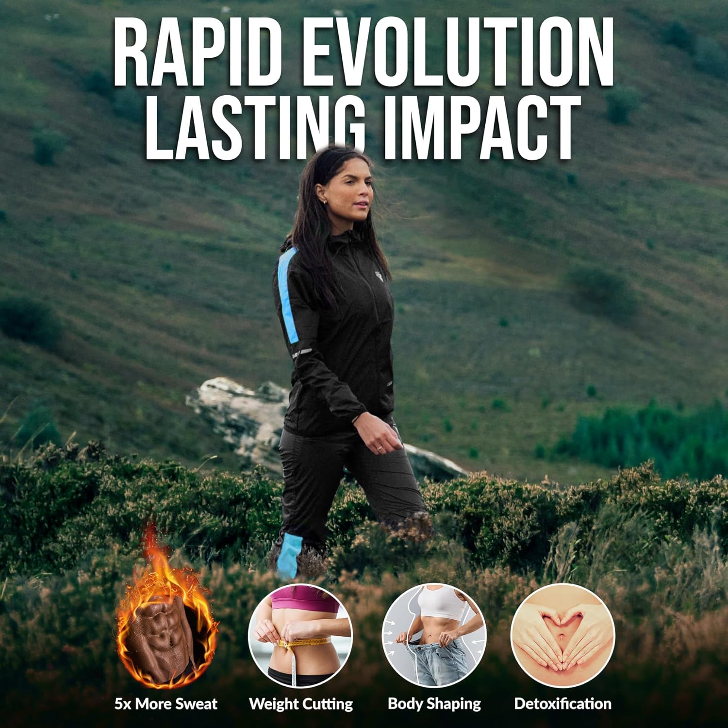 • 5x sweat production with the ground-breaking Instant Sweat, Fabric and the silver lining of Heat Suit, Technology.