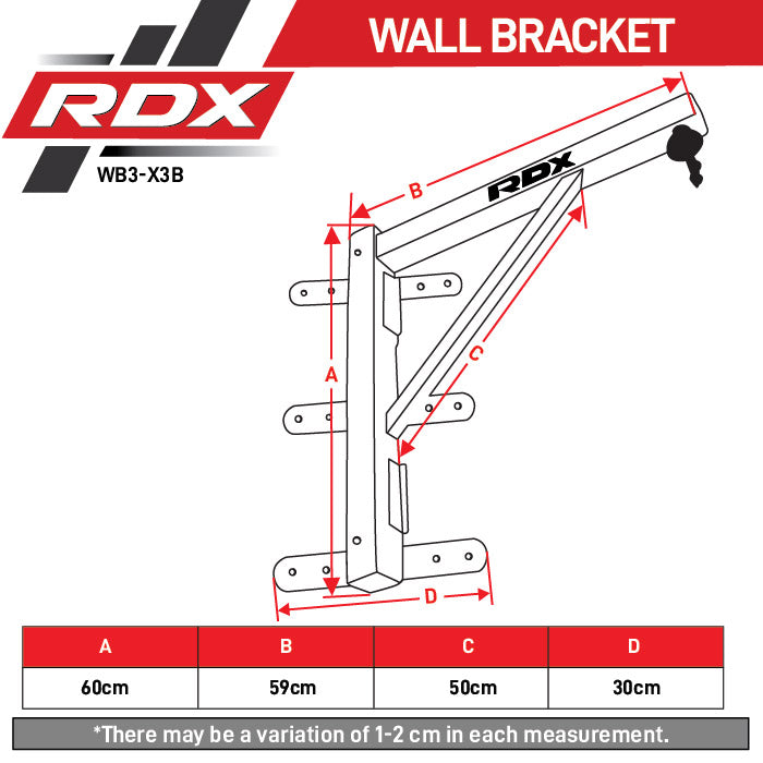 Not all wall brackets are built equally! RDX®s latest Folding Wall Bracket is ergonomically designed to utilize space efficiently, and can carry some serious weight. The 90cm extending arm can easily carry up to 250lbs, and when you're done using the heavy bag, you can fold the arm away to regain space. Strong P-Coated HG-Iron is treated with H-CR anti-rust layering for a long-lasting all-weather product.