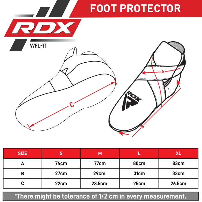 Unlock your potential in kickboxing and Taekwondo training with RDX WAKO-approved and stamped kickboxing foot pads. Crafted from genuine cowhide leather for durability, the adjustable nylon straps and Quick-EZ Hook-and-loop closure offers a secure fit. The Trinda and suede lining make for ease-of-use and breathability, while the IMF-technology-moulded foam absorbs even the toughest of impacts. Offering secure ankle support, these WAKO kickboxing foot guards are available in two colours and four sizes.
