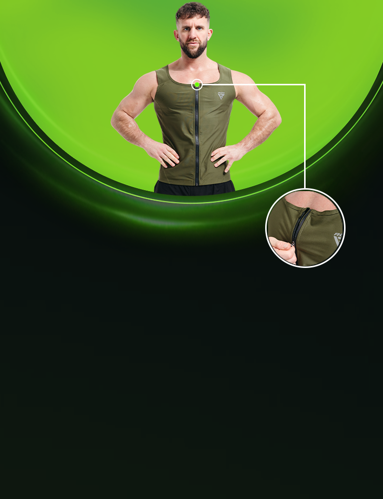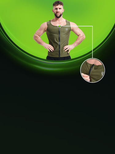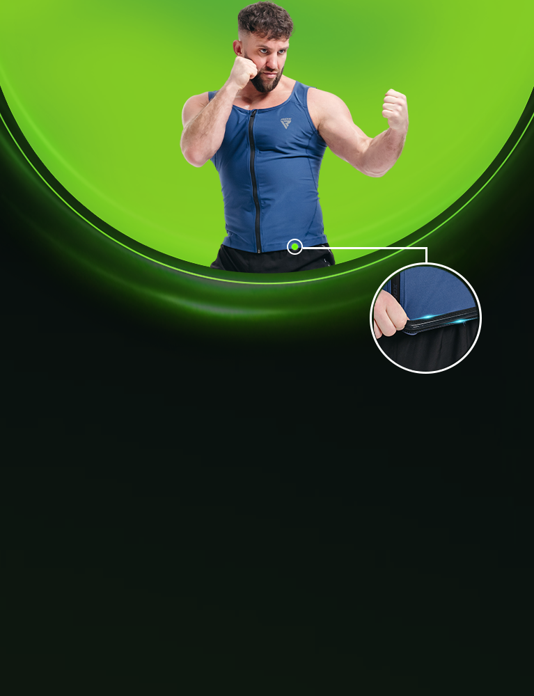 This eco-champion (REACH OEKO-TEX 100 certified!) men's sweat vest intensifies your burn with 5x sweat power, thanks to Heat Suit, Tech's blue-lined inferno. Comfortable and snug fabric moves seamlessly, sculpting your physique while a concealed zip and reflective accents maintain focus and visibility. From dawn jogs to fiery HIITs, sweat smarter, not harder, in this versatile marvel. Your fitness journey, redefined.