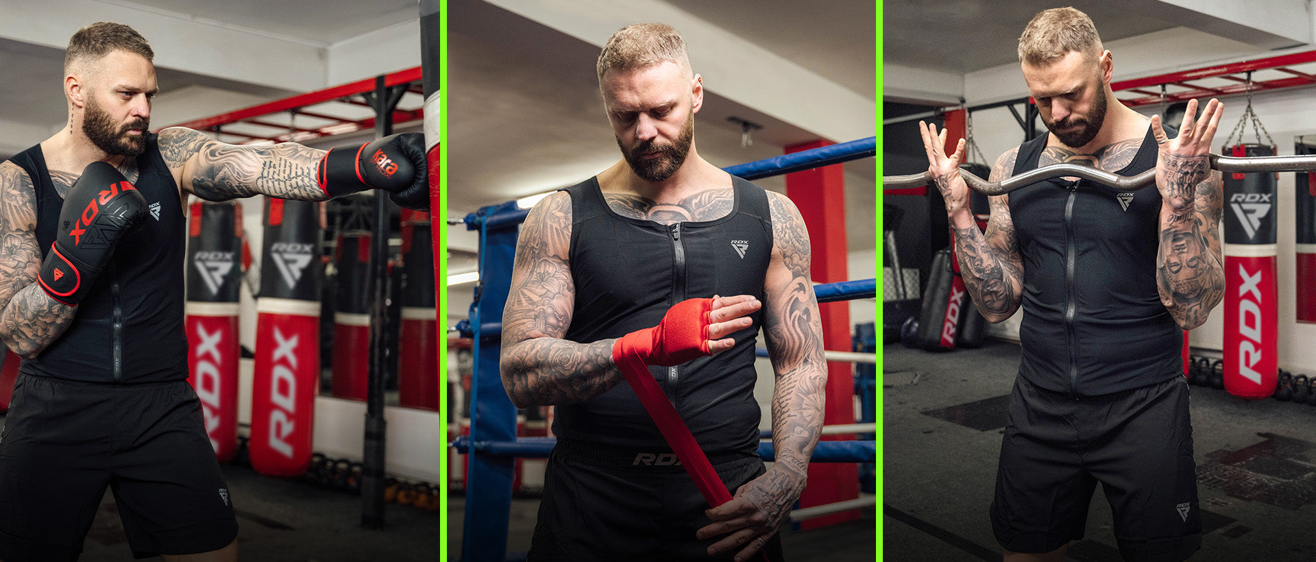 - Heat Suit, Technology is a mix of Instant Sweat, Fabric and blue lining that retains heat and boosts sweat production by 5x.